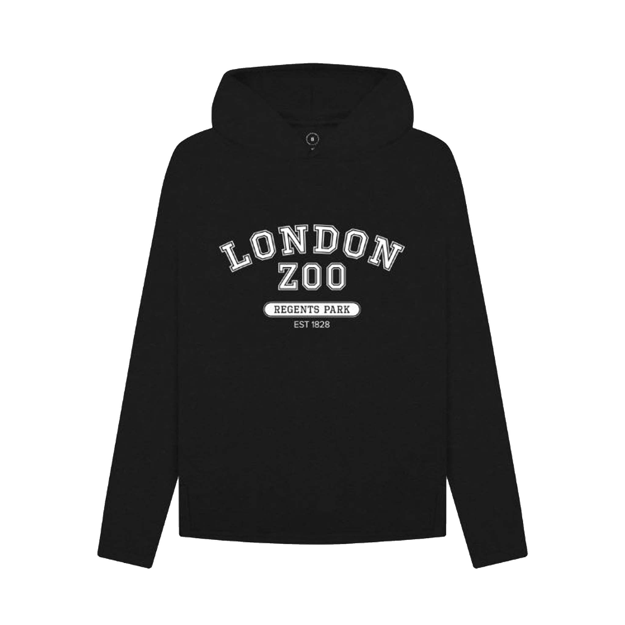 Our eco friendly hoodie has been made from soft organic cotton. It features long sleeves, cosy hood, and white London Zoo varsity print to the front chest.