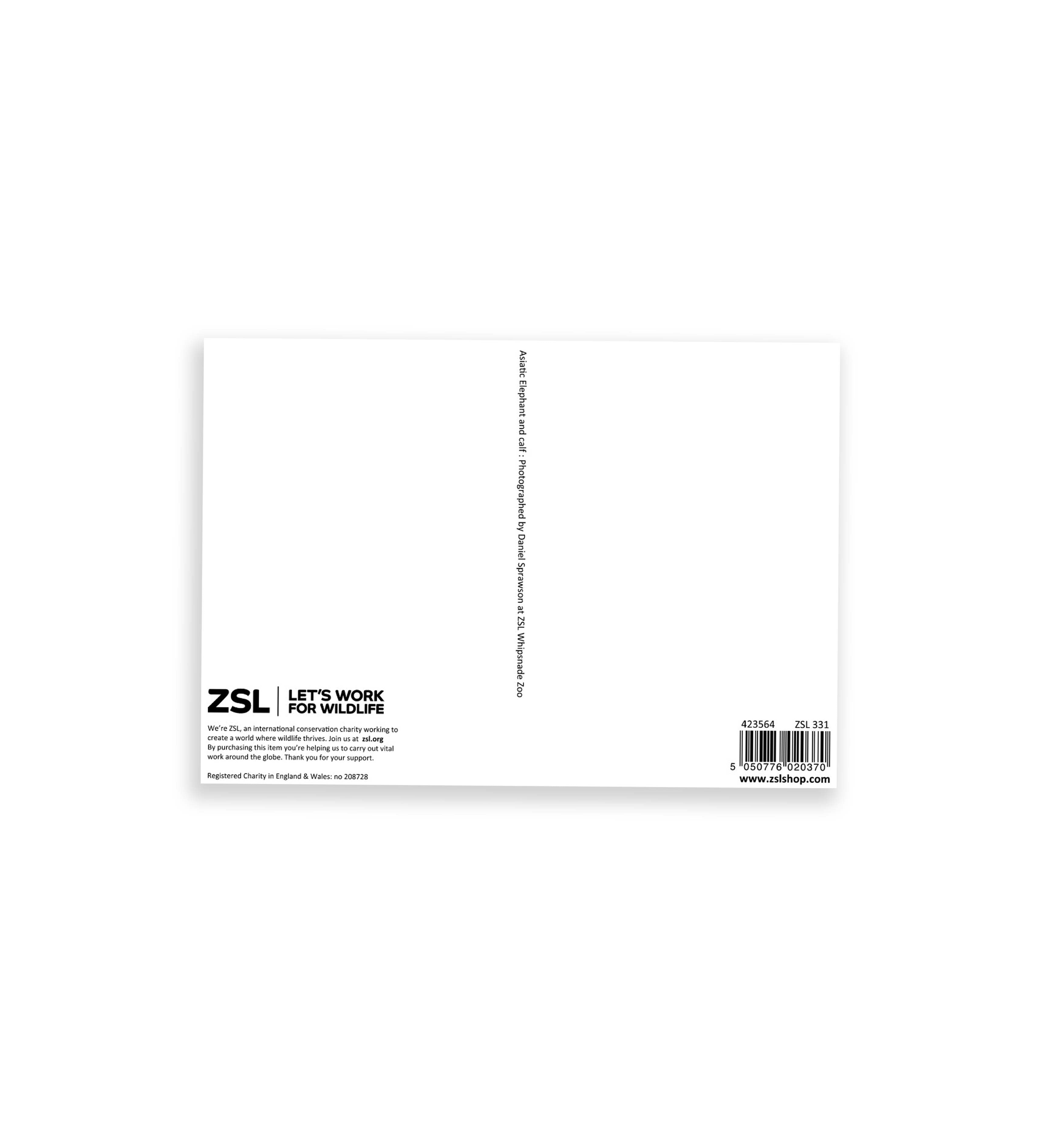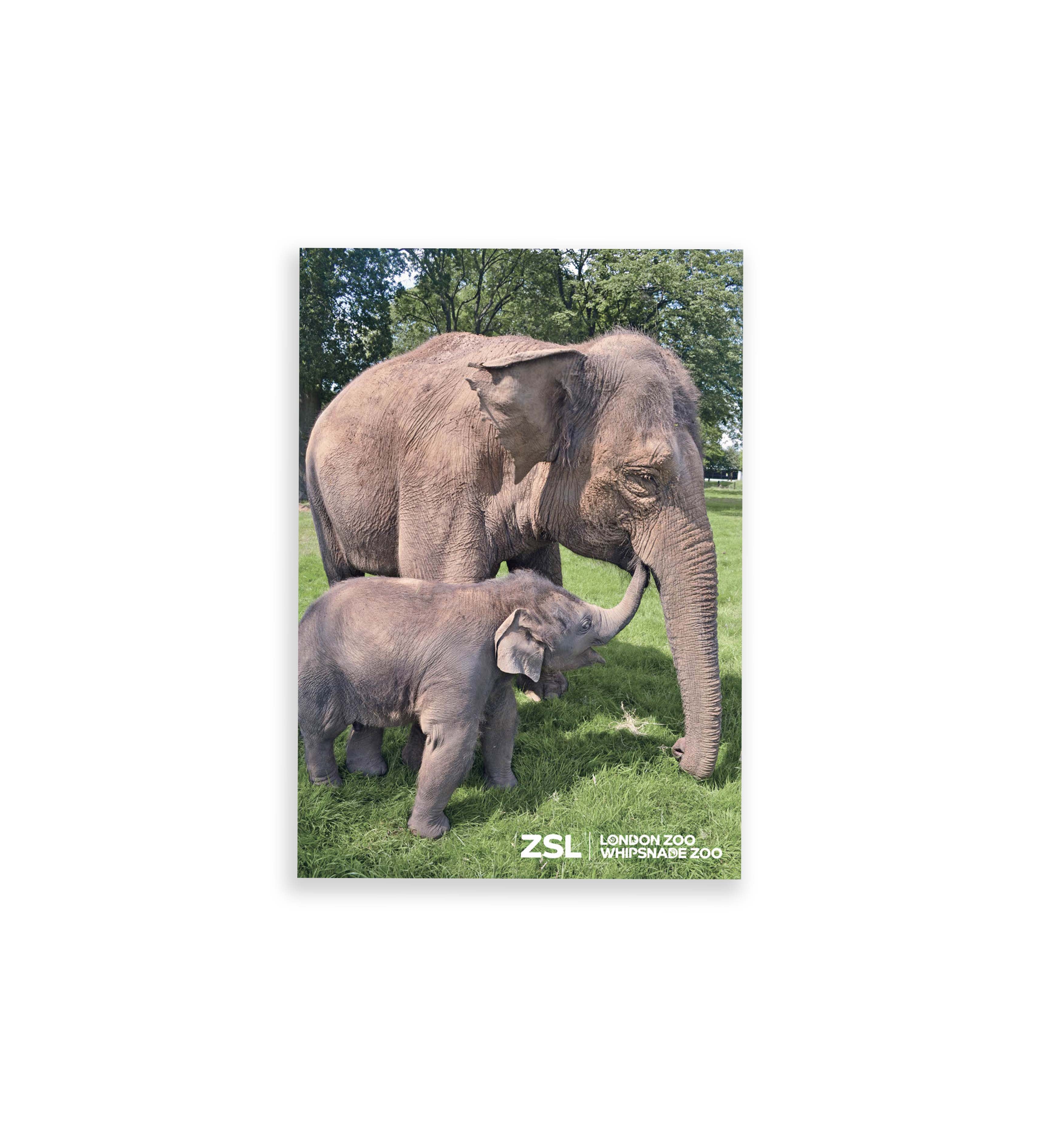 This Asiatic Elephant postcard features an endearing image of two elephants at Whipsnade Zoo.