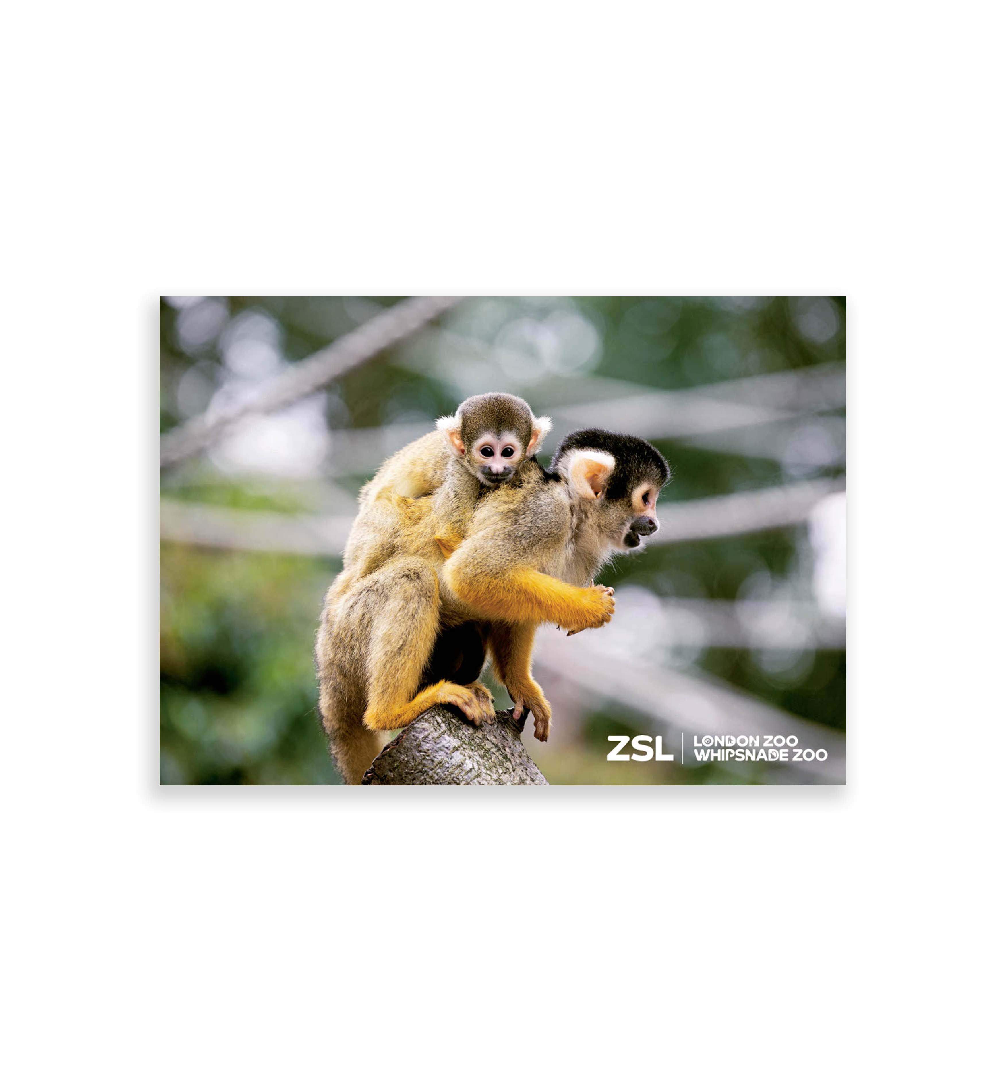 This cute animal postcard features two cheeky squirrel monkeys at London Zoo.