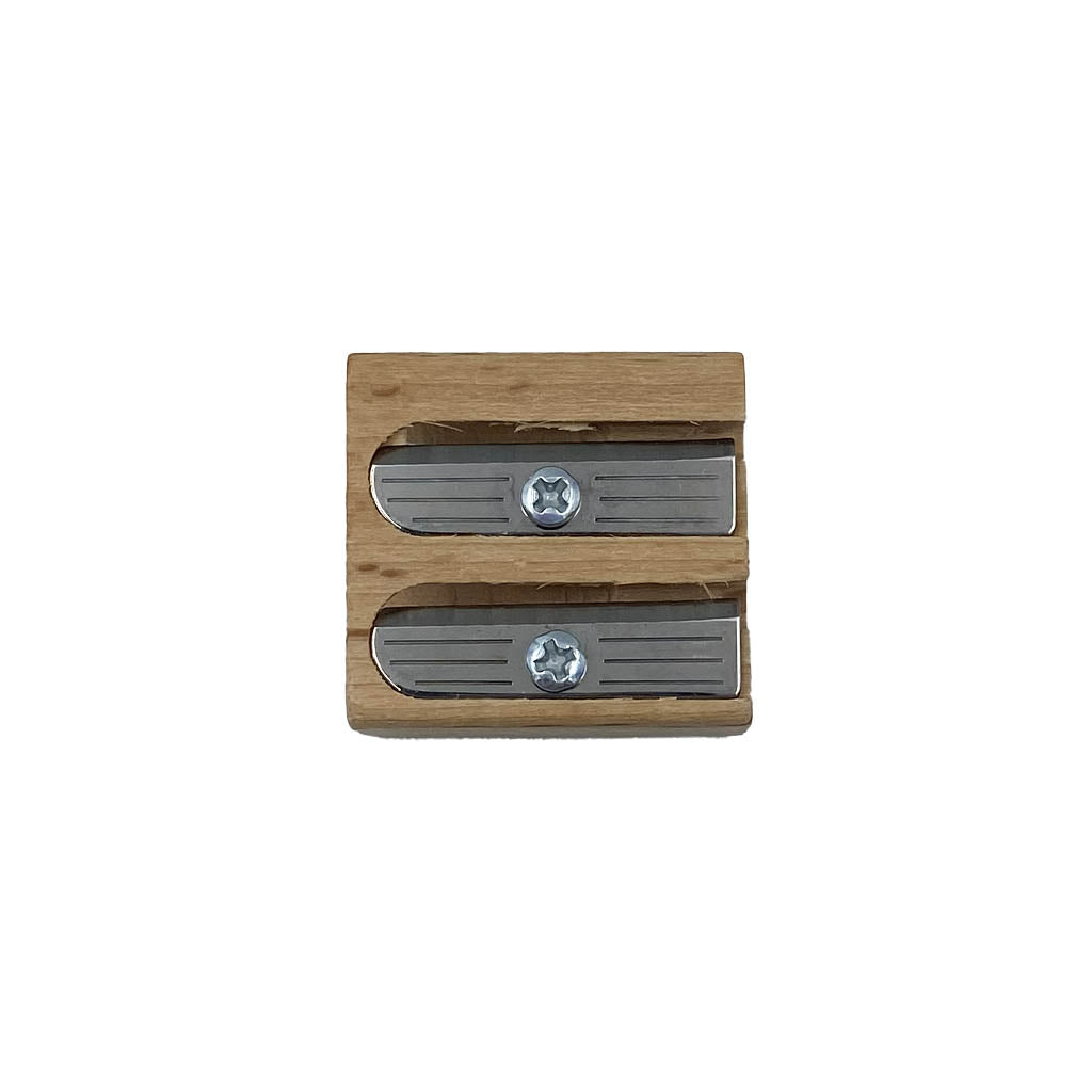 A handy double pencil sharpener made from sustainable wood.