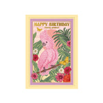 The card features a detailed and delicate drawing of a cockatoo bird perching among lush foliage. Warm colours bring a tropical summery feel to brighten up anyone's special day. Foil detailing adds a lovely tactile finish.