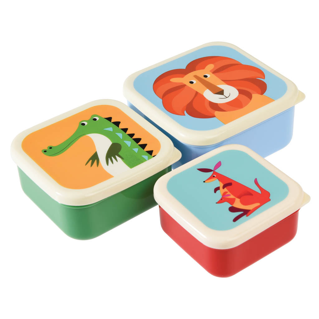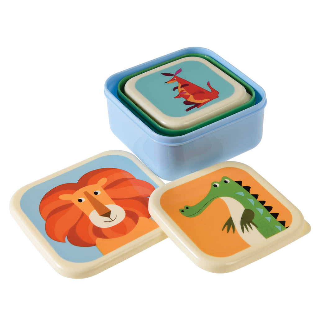 Perfect for little adventurers, this reusable set of nesting snack boxes makes food storage simple and fun. Each box features a lovely animal illustration - lion, crocodile and kangaroo.