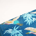 Adorned with intricate crane embroidery, sparkly gold glass beads, plus pink and green tassels, this pretty cosmetic bag is inspired by the beauty of Japanese Kimono fabrics.
