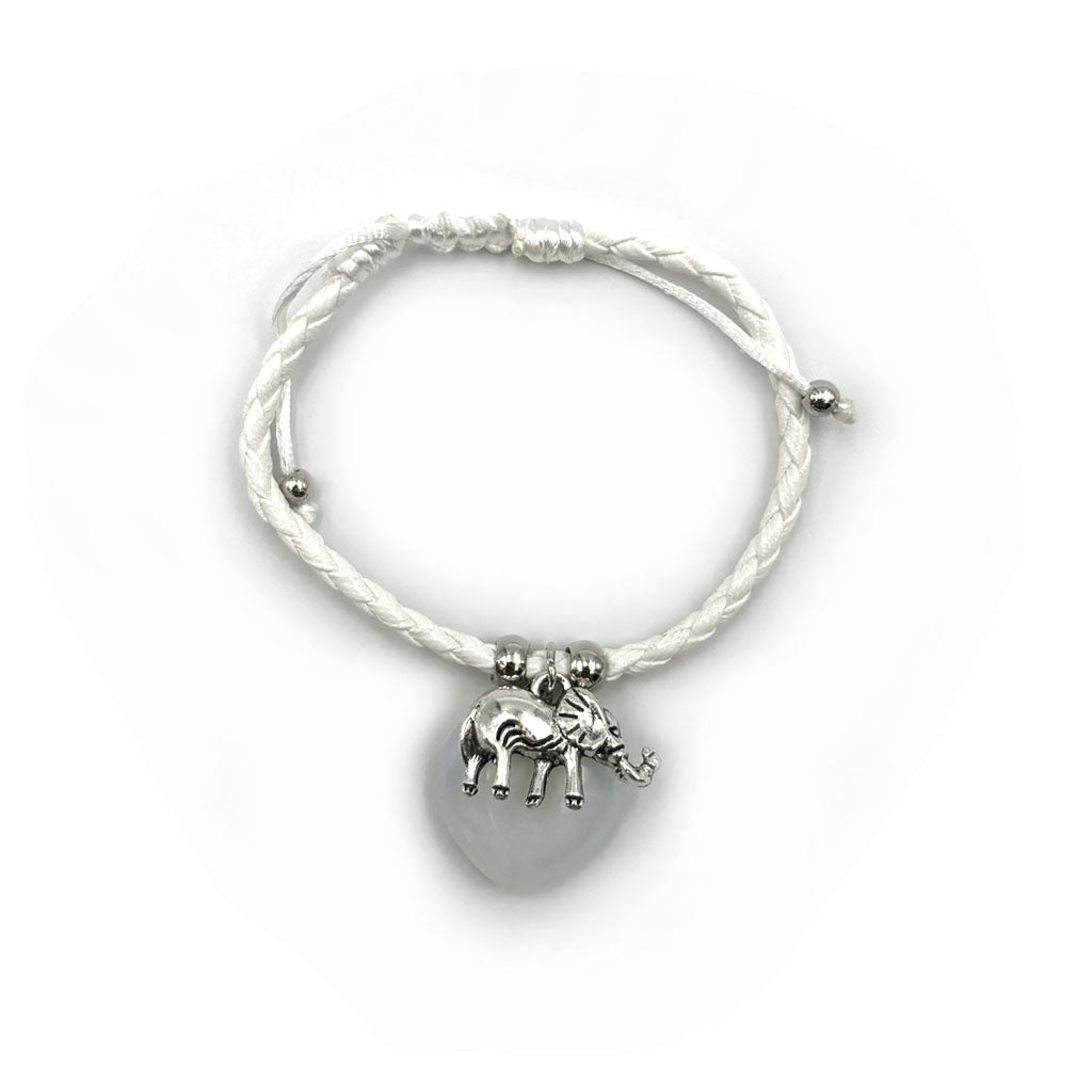 This white elephant bracelet features two charming pendants, a heart in coordinating colour and a lovely little elephant.