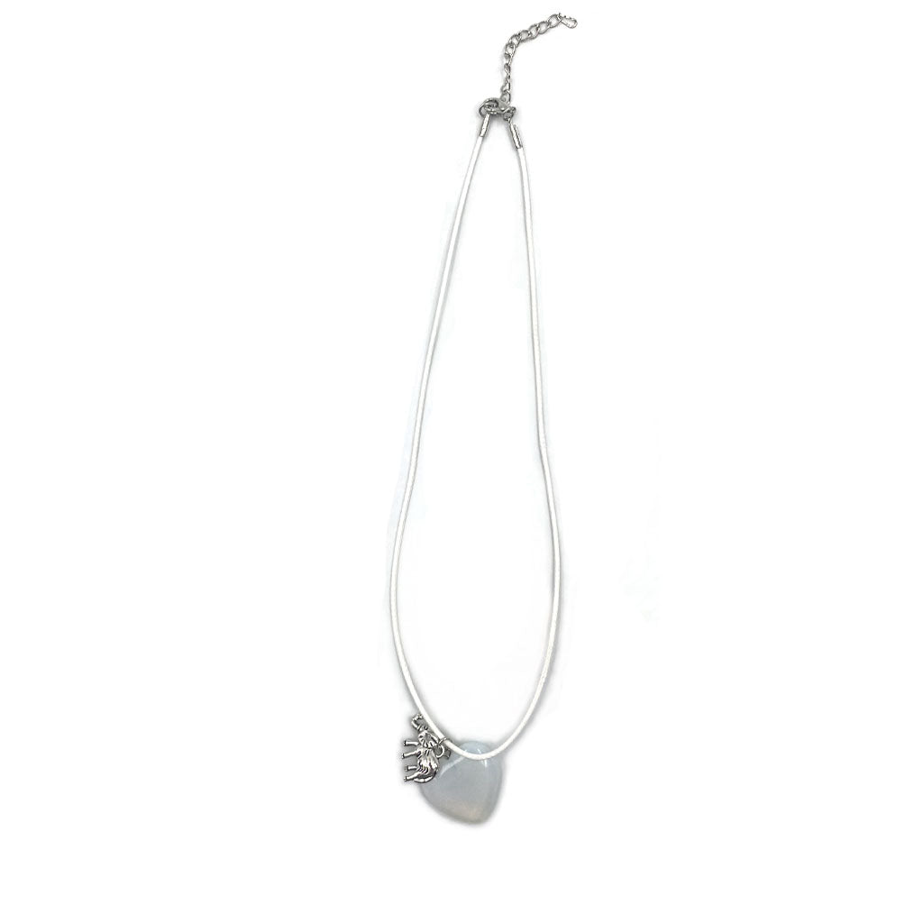 This elephant necklace features two delightful pendants: a charming little elephant and a white stone heart.