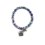 This giraffe bracelet features colourful beads in blue and purple hues, along with a charming little giraffe pendant.