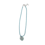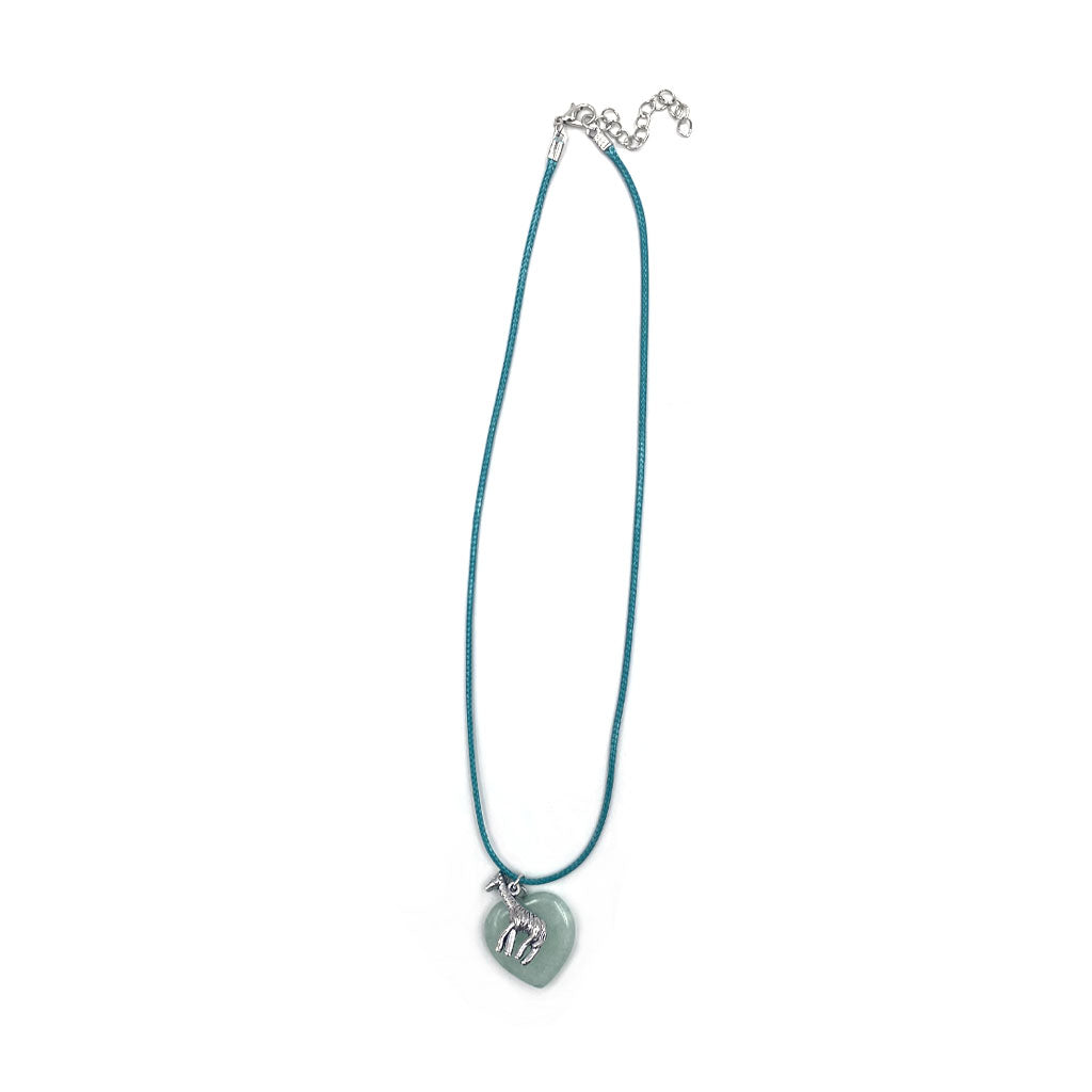 This giraffe necklace features two delightful pendants: a charming little giraffe and a heart in a light turquoise hue.