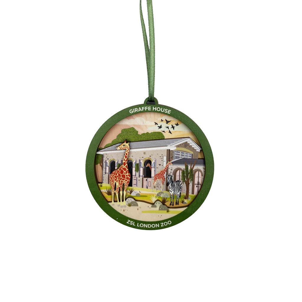 Designed exclusively for ZSL, this hanging decoration celebrates the iconic Giraffe House at London Zoo – the oldest building at the zoo still serving its original purpose.