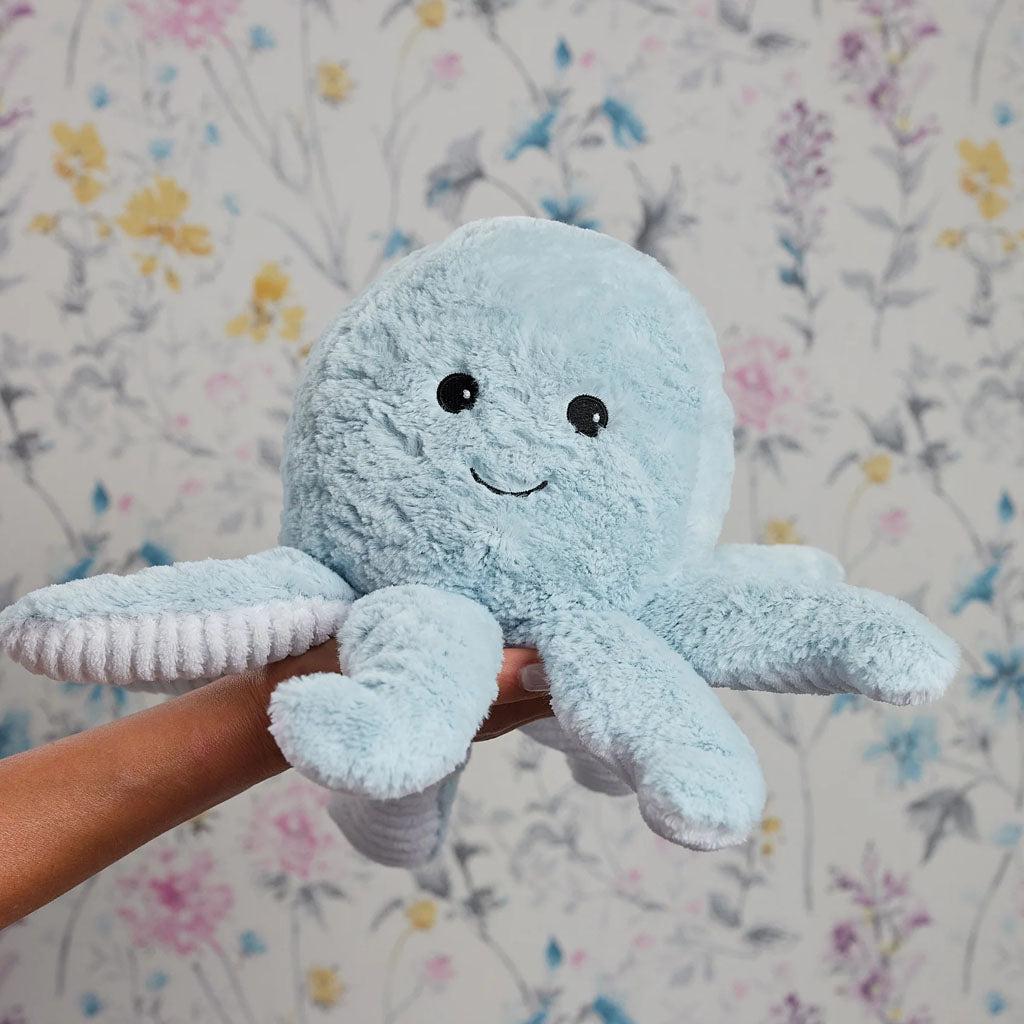 With its super soft finish, this blue octopus is perfect for cuddling and makes a charming bedroom decoration.