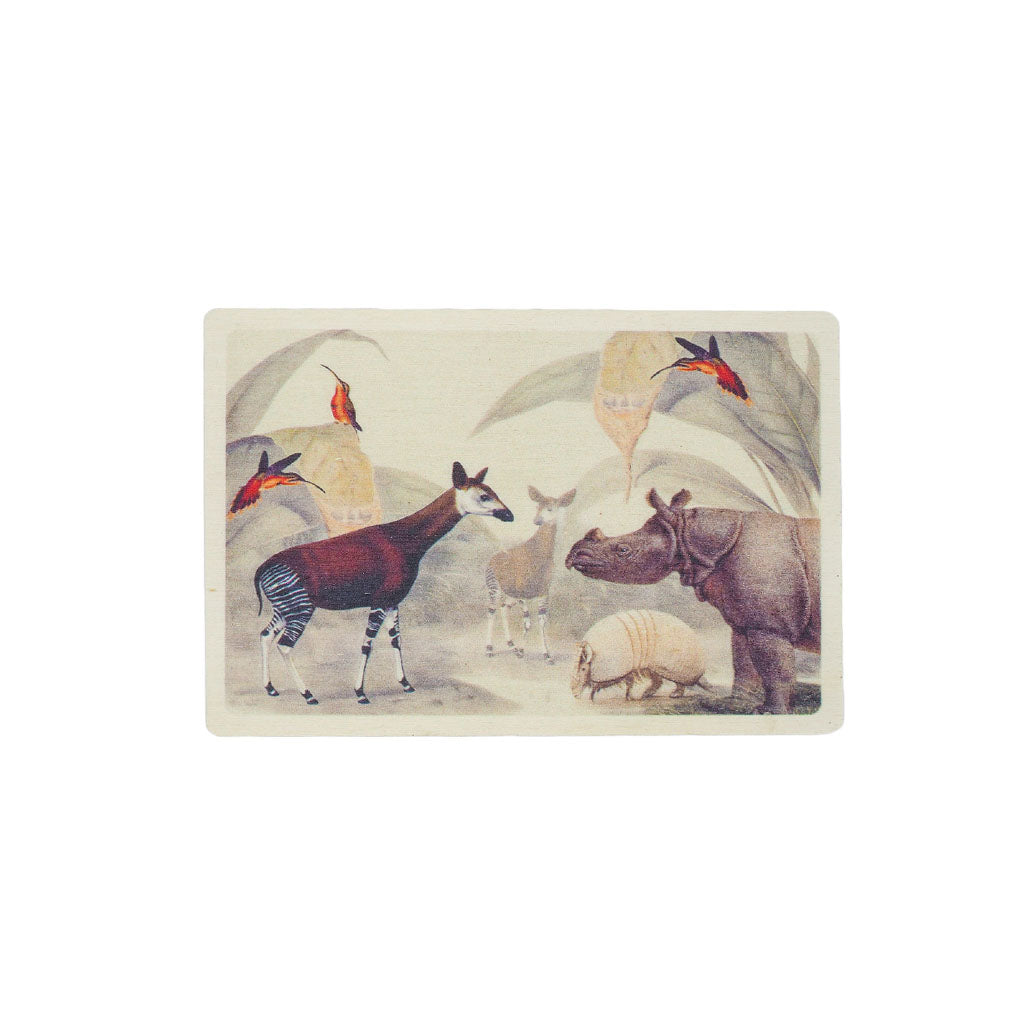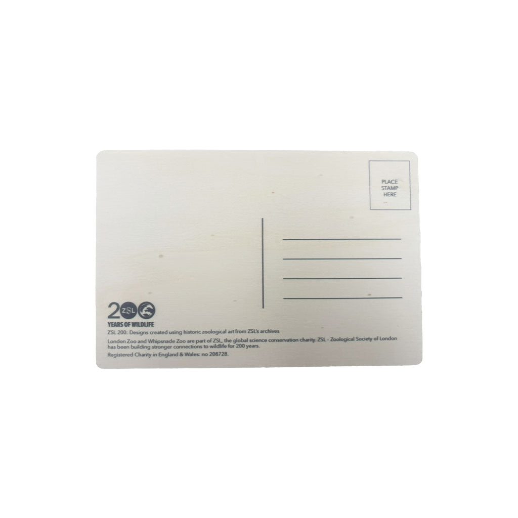 Created in celebration of ZSL’s 200th anniversary, this unique wooden postcard features a charming okapi scene using illustrations sourced from the ZSL's archives.