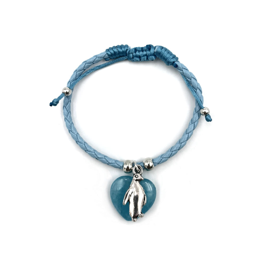 This blue penguin bracelet features two charming pendants, a heart in coordinating colour and a lovely little penguin.