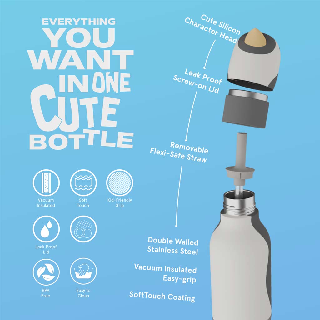 A detachable penguin head top, a soft silicone straw, and a leak-proof screw-on lid make this a versatile and multi-functional item.