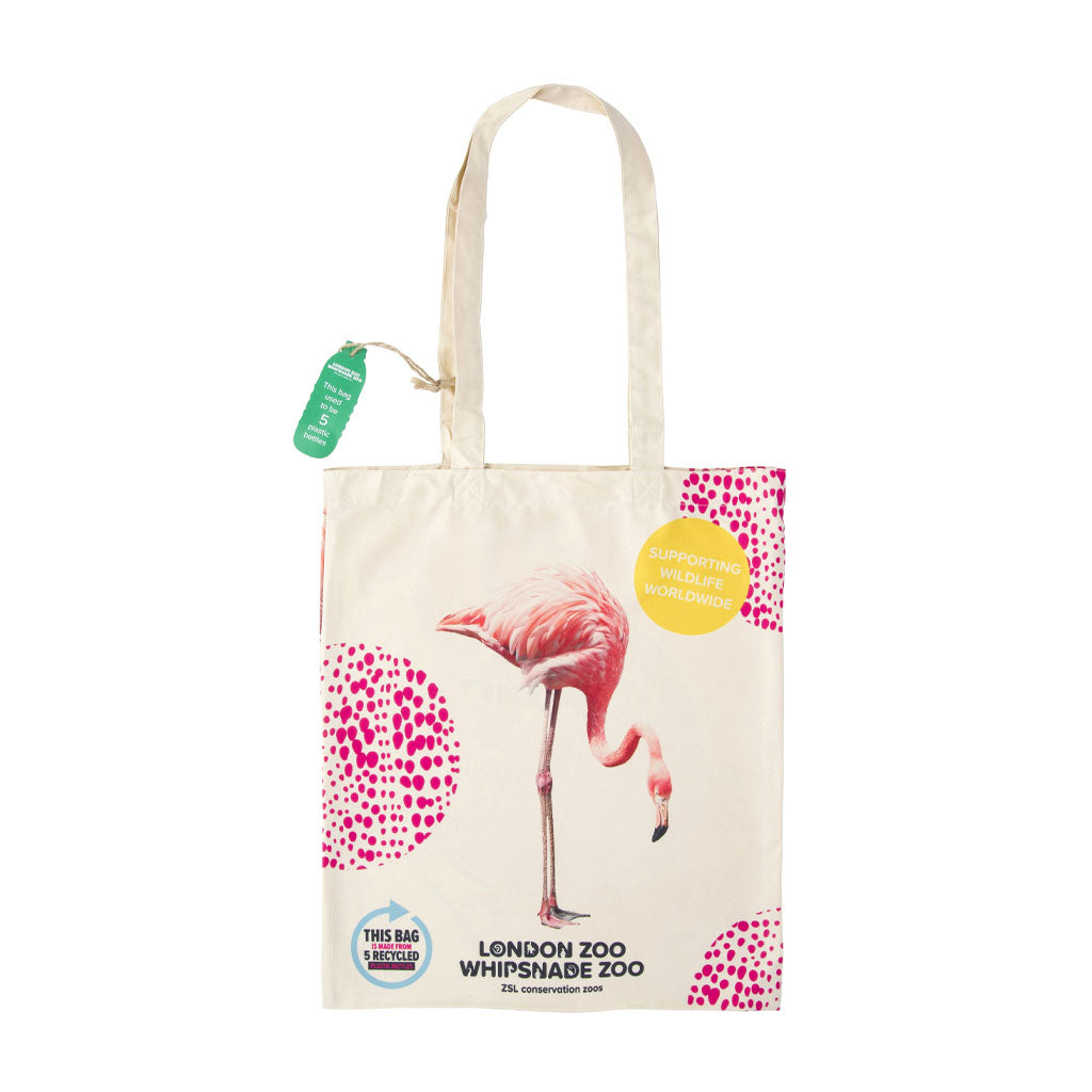 Exclusive to ZSL, this tote bag features a vibrant flamingo design and a powerful message reminding us all to protect our planet – the only home for these fabulous birds.