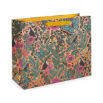 A large premium gift bag adorned with a beautiful tropical bird and plant print. It also features yellow handles and a matching butterfly gift tag.