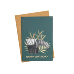 An adorable red panda birthday card for wildlife lovers, featuring a detailed red panda illustration surrounded with gold foil foliage.