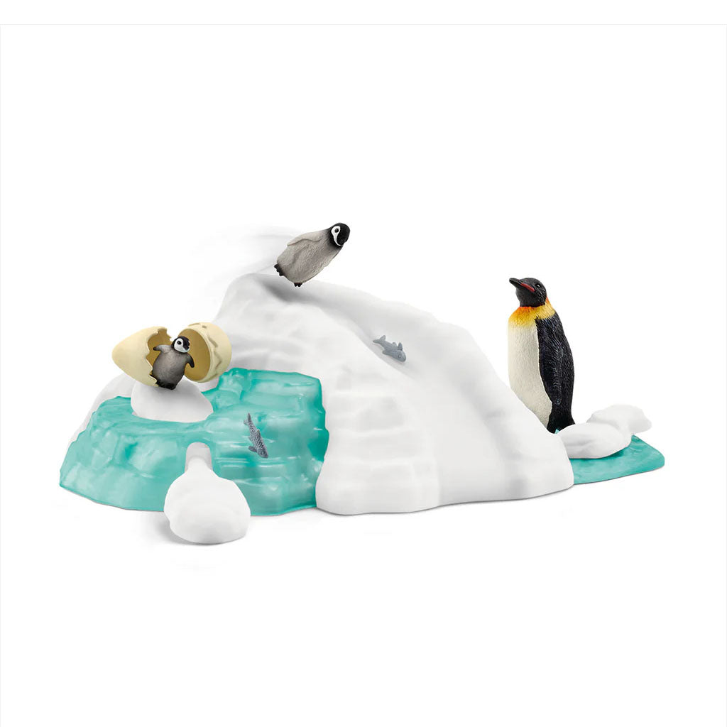 This toy figure playset from Schleich takes children on exciting adventures with an emperor penguin family.