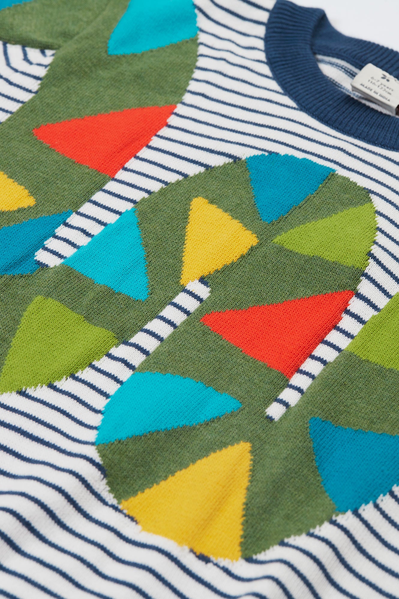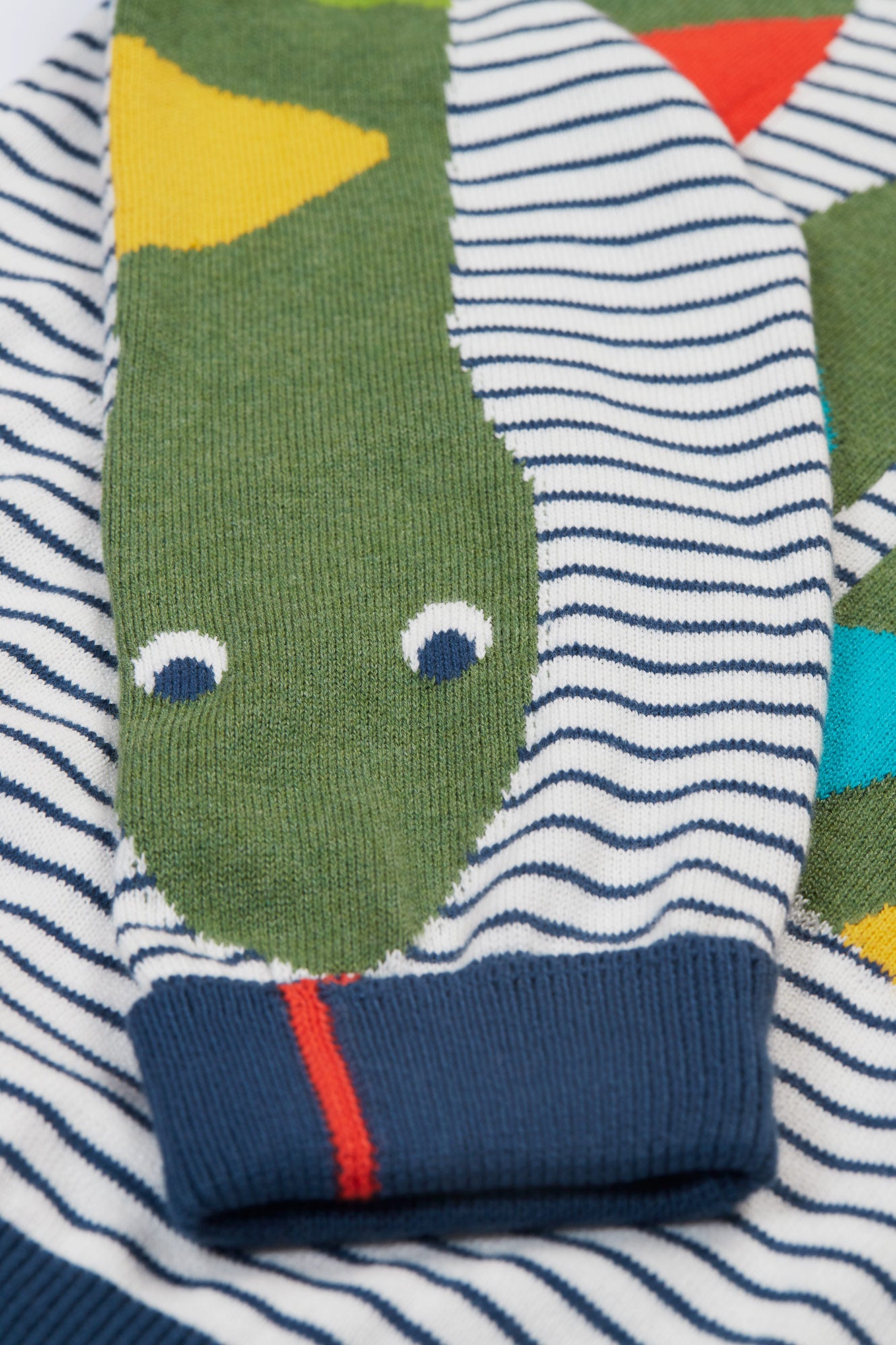 This stripey jumper with fun snake detailing has been designed by eco friendly clothing brand Frugi.