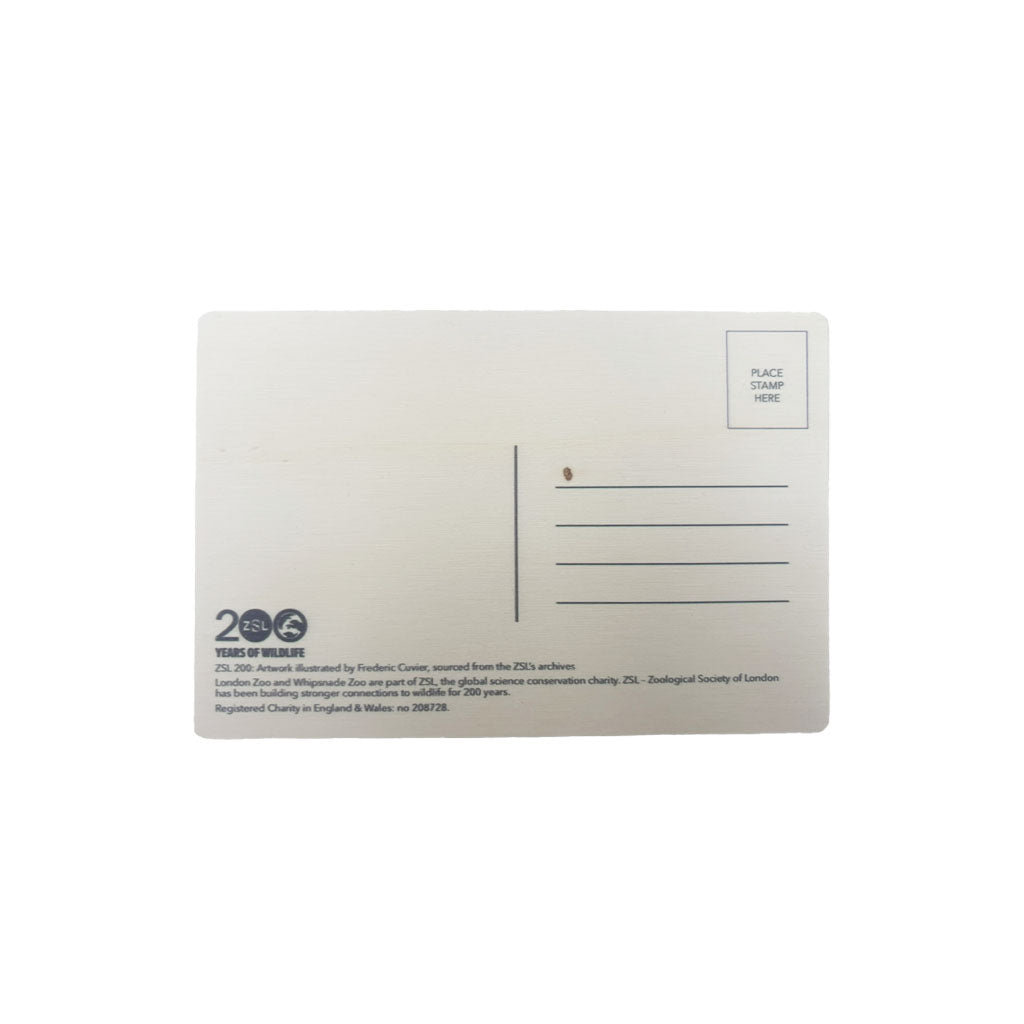 Created in celebration of ZSL’s 200th anniversary, this unique wooden postcard features an intricate tiger illustration by Frédéric Cuvier, sourced from ZSL's archives.