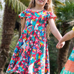This bold bird print dress is perfect for trips to the Zoo and summer holiday adventures!