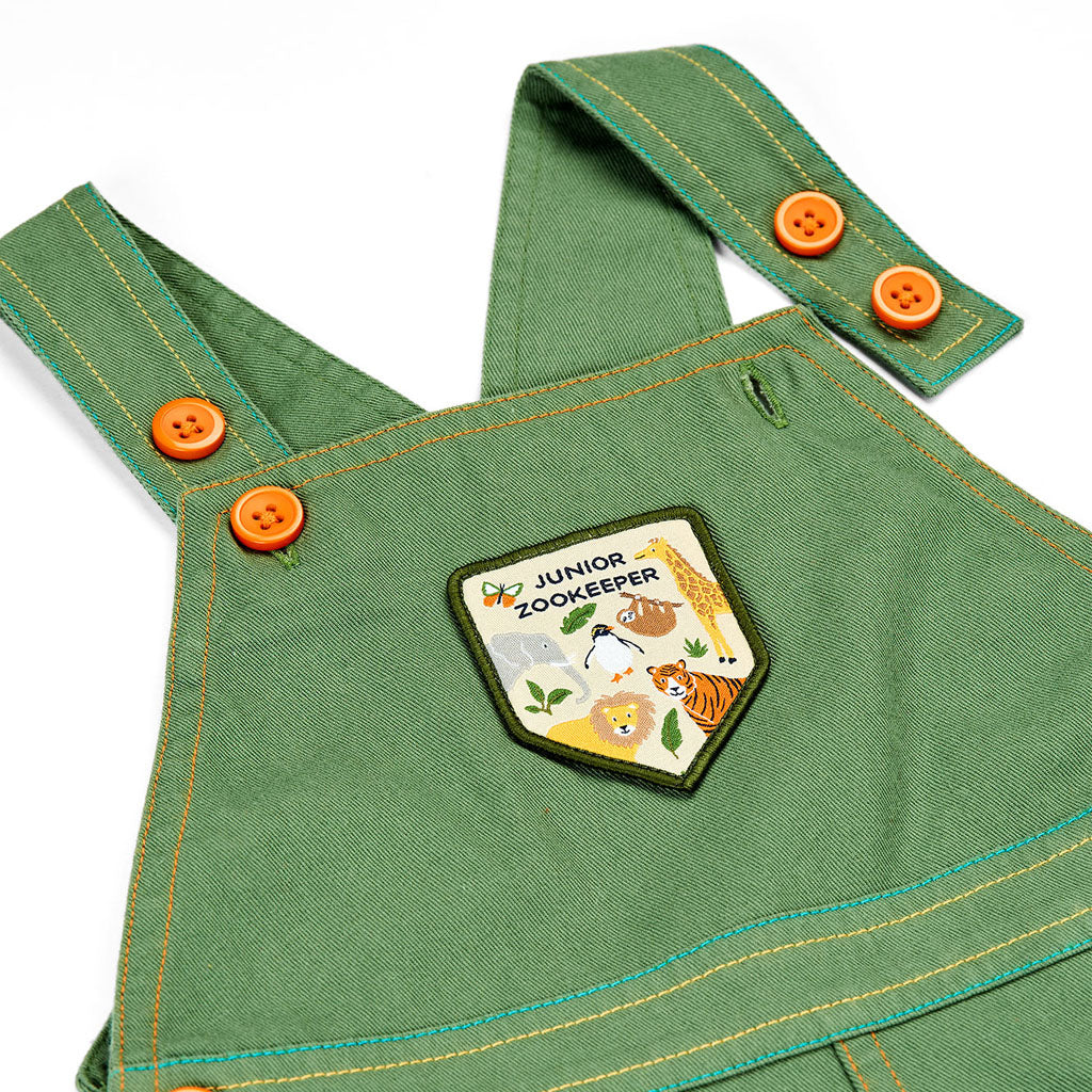 Designed by Frugi in collaboration with ZSL, these toddler overalls feature a Junior Zookeeper patch on the front, animal appliqué patches on the knees, and bold ‘Zookeeper’ embroidery with coordinating animal appliqué on the back.