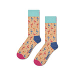 This pair features a colourful flamingo print and contrasting colour block detailing on the cuffs, heels, and toes.